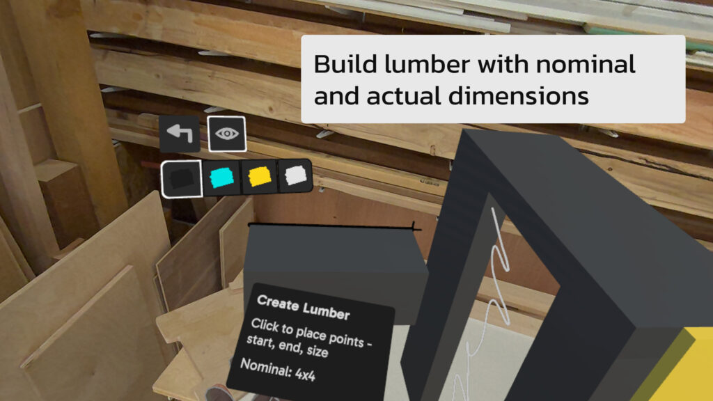 - Draw 2x, 4x, and 6x lumber with real sizes (eg, 2×4 is 1.5×3.5)