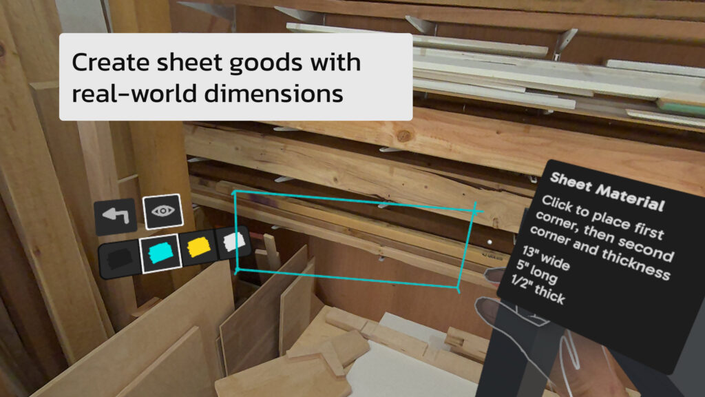 - Draw sheet goods with real sizing (1/2″, 3/4″, 1″)