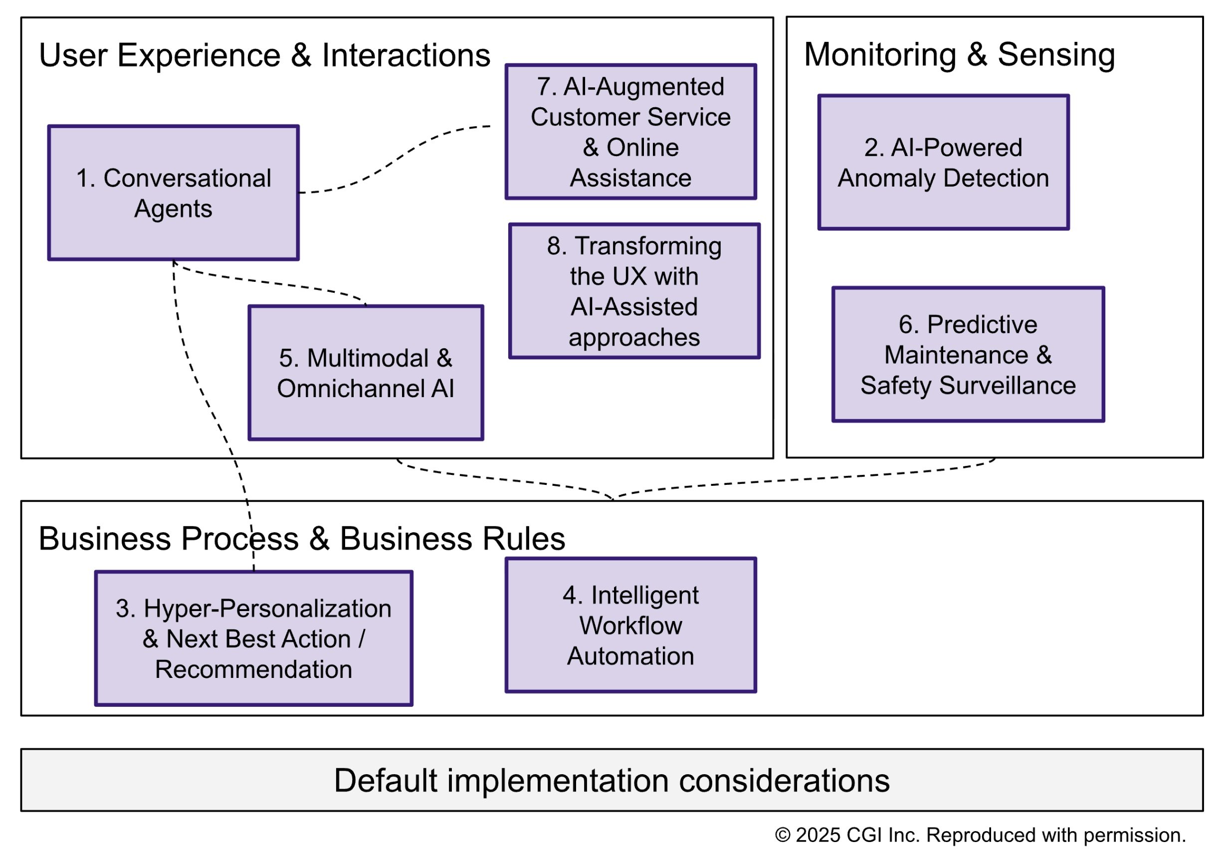 The following case study serves as proof of architectural flow in action. In one CGI initiative the objective was to translate AI use-cases into AI-enabled implementations at scale across a range of business solutions.