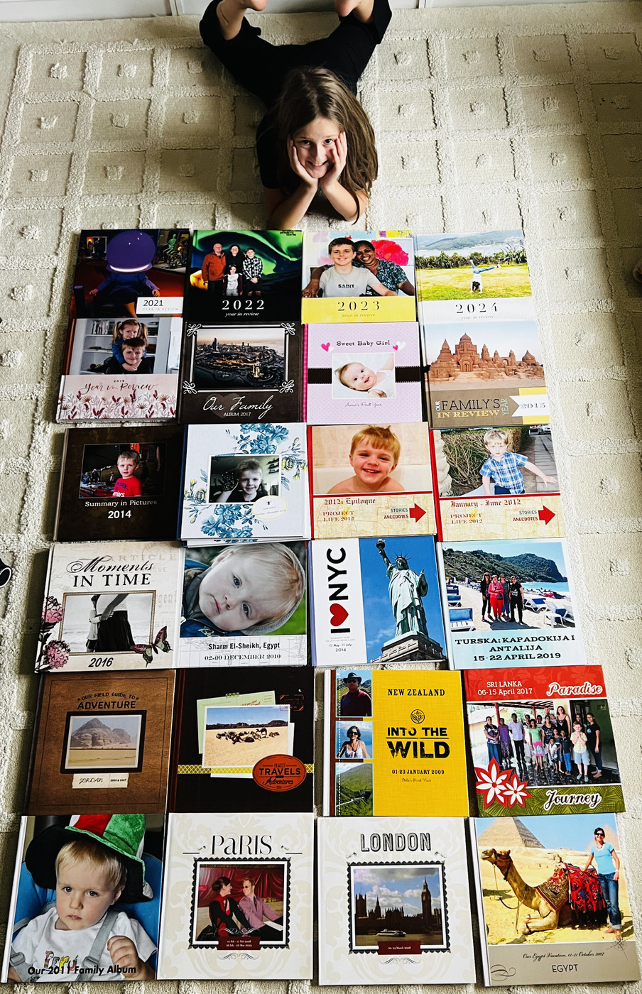 Digital memory-keeping came later. Services like Shutterfly, and then Mixbook, completely changed how I approached this. I started creating 12×12 digital photo books, one per year, plus separate books for more significant family trips.