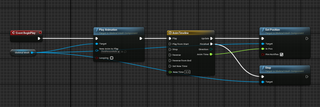 So anyway, my choice was to either run the animations with a play animation node and control the positioning with a timeline similar to how I animated the head bobbing, or set up a state machine, which is like a flow chart that you can only connect certain animations to others with careful logic, so the left attack drawback animation can ever lead into the left attack swing animation and there’s no chance of screwing up. State machines are probably the right choice, but I decided to go with timelines for a couple reasons. Firstly, I’ve never really used state machines and don’t feel comfortable building an entire complex combat system out of them. Secondly, I want the attack damage to scale with how far you let the animation play before releasing the attack, so if you wait the full half second or however long, your damage scales up to full. I know how to do that in a timeline but I don’t know how to do that in a state machine. I’m setting up some careful logic to prevent overlapping actions. It doesn’t scale well, but if I keep the system simple it should work.