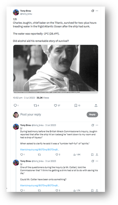 His tweetorials were consumed, argued and commented by doctors, nurses, pharmacists, students, and researchers from other fields. They have titles like ‘Charles Joughin, chief baker on the Titanic, who survived for two-plus hours treading water in the frigid Atlantic Ocean after the ship had sunk’ to ‘Have you ever wondered why we don’t use steroids to treat acute pancreatitis (AP)? I have!’