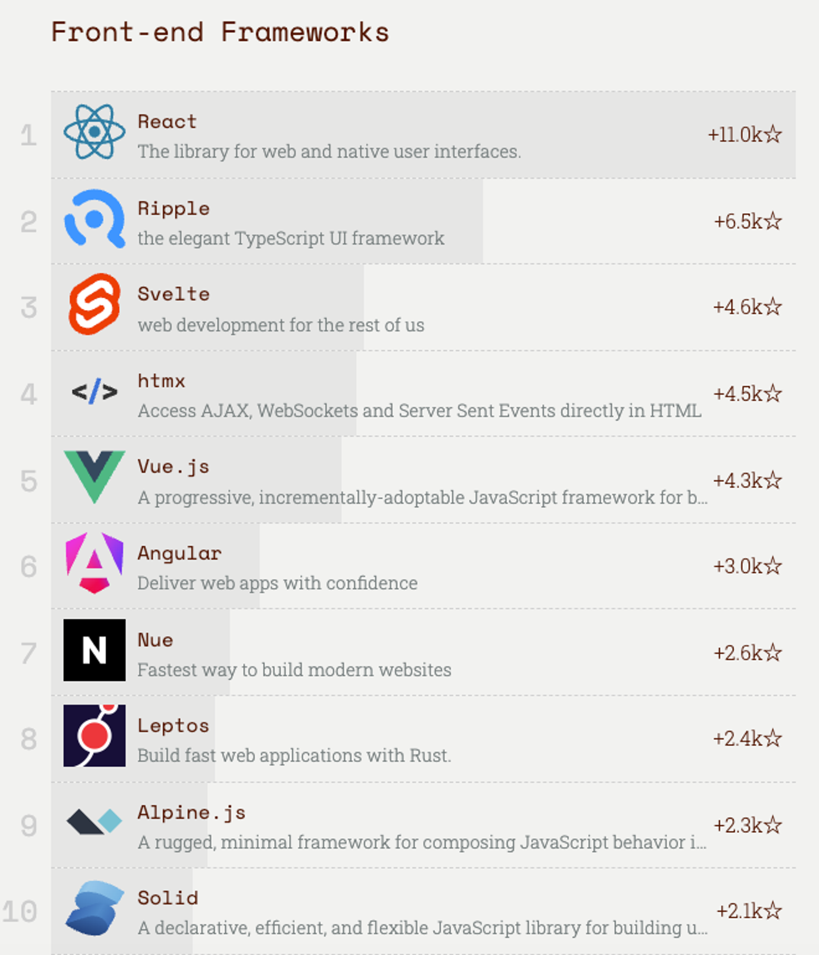 For the complete 2025 rankings and a look back at all ten years of Rising Stars, check out the JavaScript Rising Stars website.