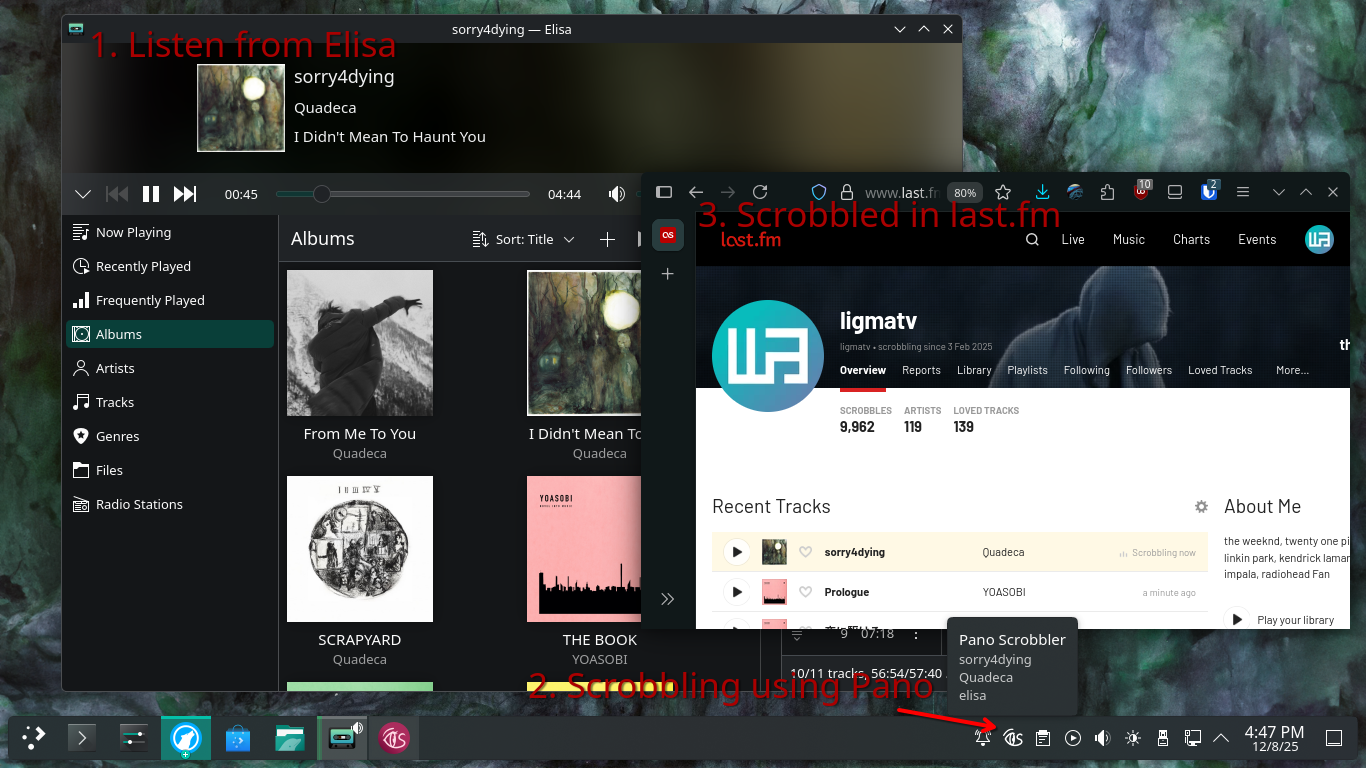 And it’s even give me an resource about tools that I really needed, for example Last.fm tools, and it’s the way I get into Pano Scrobbler. It’s really easy setup too! And I using the Built-in KDE Music Player "Elisa", so in Pano Scrobbler i just need to choose "elisa" in Configure > Scrobble from.