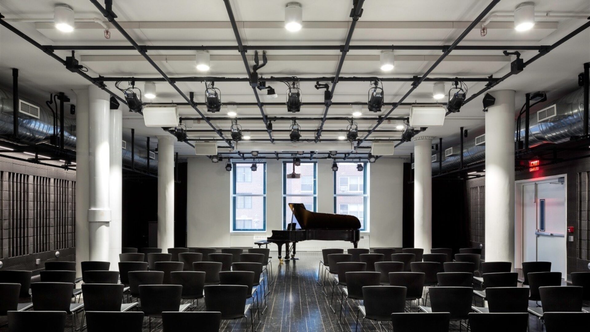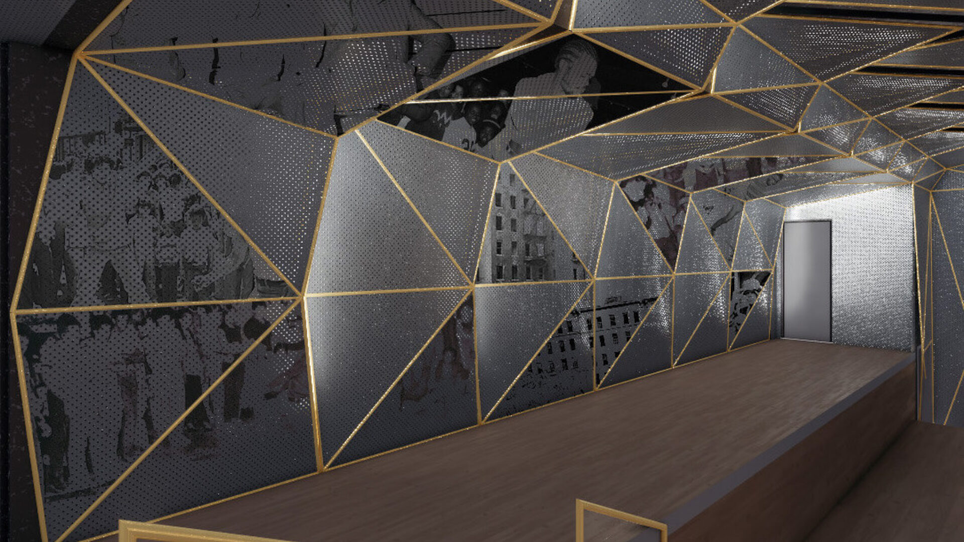The Hip Hop Museum’s main performance space will have a signature look and will accommodate many types of live performances and presentations. Utilizing a unique and innovative retractable seating system, the venue will have multiple formats, ranging from corner stage and cabaret to film screening and tiered banquet seating. The space also contains a unique overhead grid, and additional strongpoints integrated into the custom triangular ceiling panels. A large operable partition, which connects the venue to the main public lobby on the 2nd floor of the museum, allows for performance and event layouts that can spill into and out of the porous theatre space.