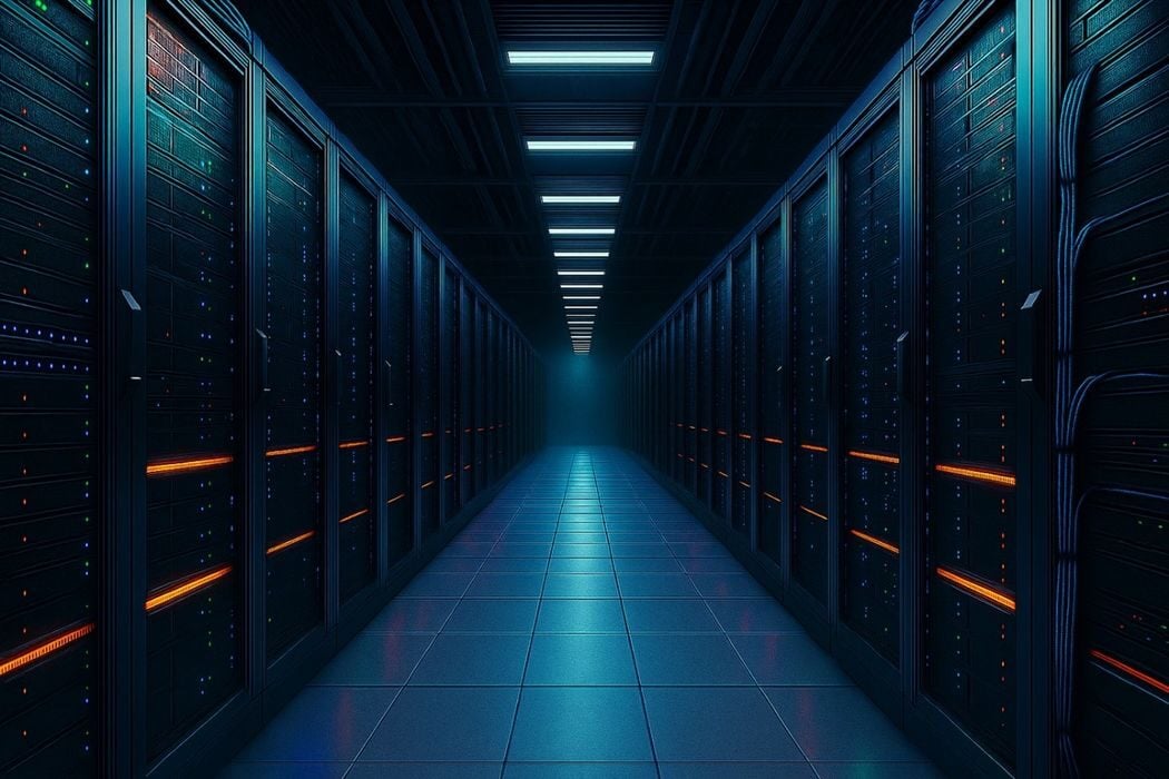 Figure 1. Visualization of a next-generation data center aisle illustrating the dense, high-performance computing environment central to modern AI infrastructure and advanced thermal management design.