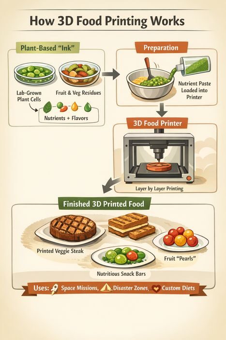 At the core of this innovation is the concept of plant-based 3D food inks — materials formulated from lab-grown plant cells and agricultural residues such as fruit by-products. Rather than cultivating full crops, scientists are focusing on growing the cells themselves and mixing them with fruit peels and pulps left over from conventional food production. This creates paste-like materials rich in nutrients and flavor potential, suitable for printing into shapes.