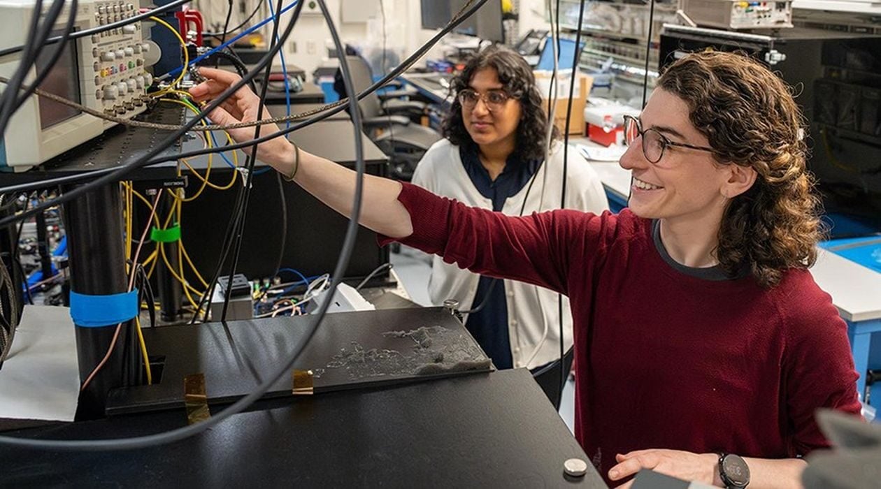 Graduate student Swathi Chandrika (left) and postdoctoral scholar Leah Weiss are part of the UChicago PME lab of Prof. David Awschalom, whose research group focuses on spintronics, solid-state and molecular quantum information science. (Photo by Jason Smith) [Source: UChicago]