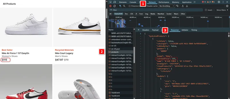 Modern e-commerce sites load pricing via JavaScript. Instead of rendering the full DOM, intercept the XHR endpoint that returns structured JSON. This method eliminates parsing overhead and provides cleaner data.