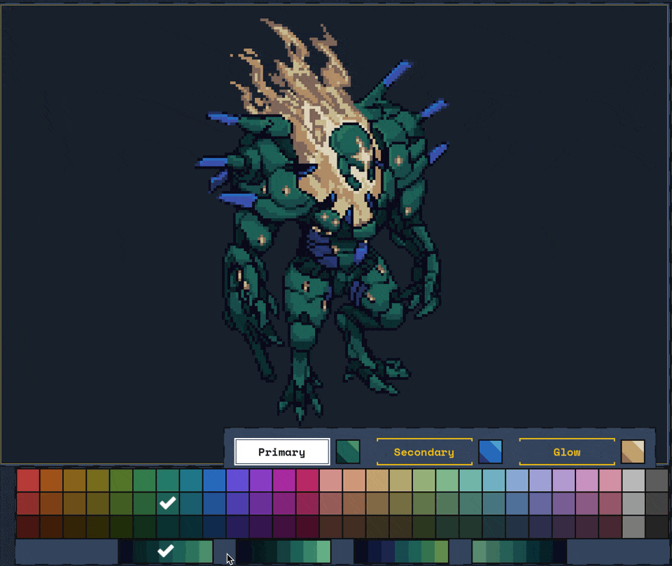 Enough was enough; I’ve felt overly constrained by the available colors in the portrait maker for a long time. We finally pulled the trigger on reworking the coloring system to be able to take any base color and automatically generating a palette from it instead of hand-crafting each available option.