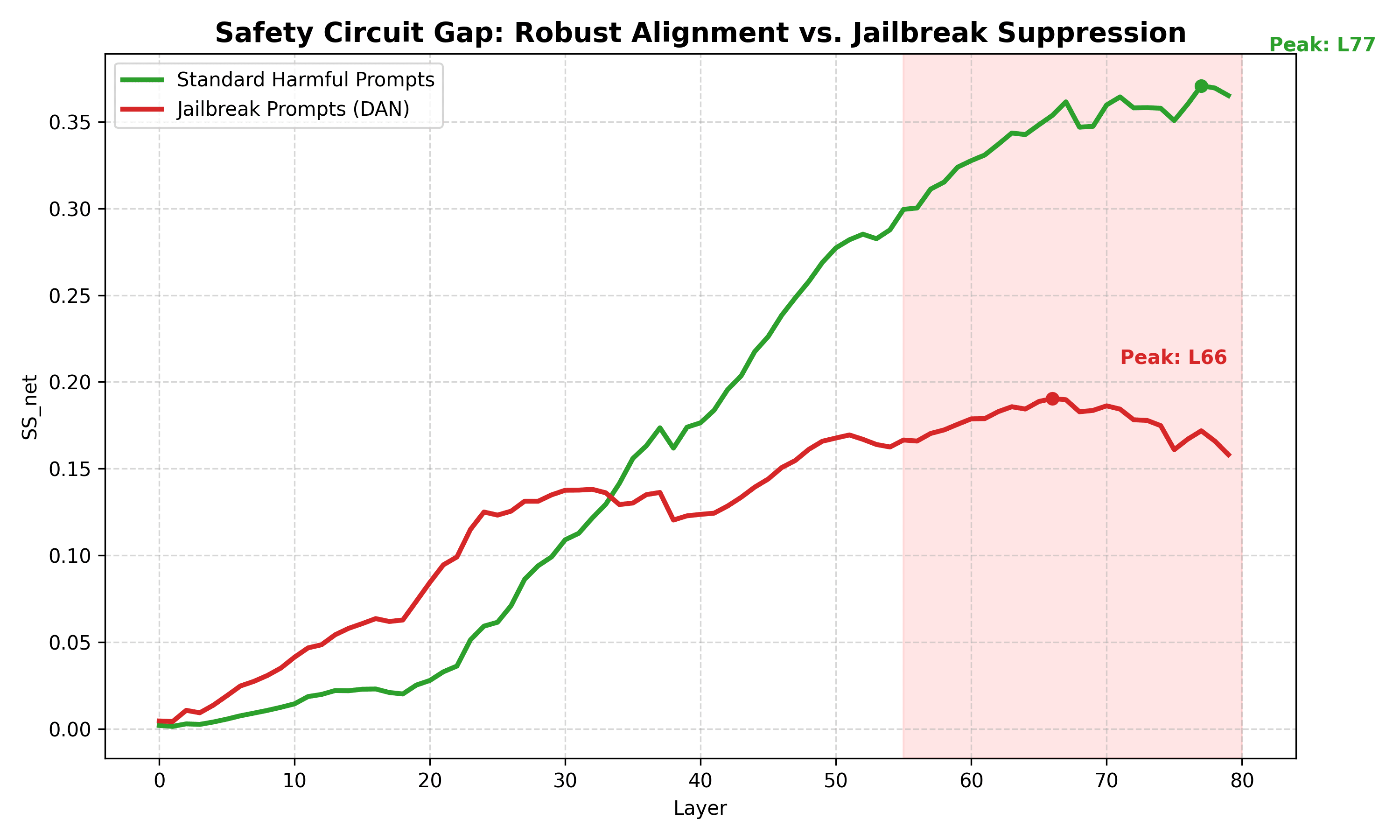 I developed the Genuine Engagement Index (GEI), a mechanistic interpretability method that measures whether a model internally distinguishes harmful from benign intent across all layers—even when both prompts produce the same surface behavior (refusal).
