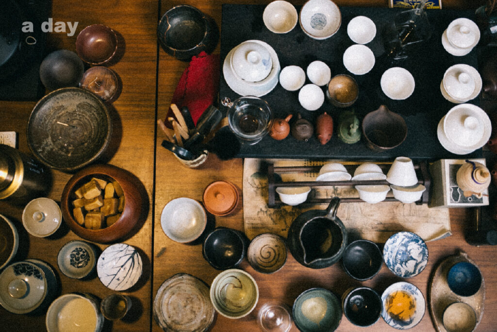 เขาหยิบถ้วยชาปั้นดินเคลือบสีน้ำตาลขึ้นมา **“นี่เป็นถ้วยจากคอลเลกชันส่วนตัวของเจ้าของร้าน หลังจากเราเพิ่งมอบตัวเป็นลูกศิษย์วิชา ถึงจะคุยกันเข้าใจยากนิดหนึ่งเพราะเขาเป็นคนแต้จิ๋ว แต่เรารู้ได้เลยว่าเขาเป็นคนที่มีความรู้แน่น เพราะแม้กระทั่งท่าจับกา ท่าจับถ้วยชงก็แม่นมาก รสชาติที่เขาชงออกมาก็เอาเรื่องอยู่ **
