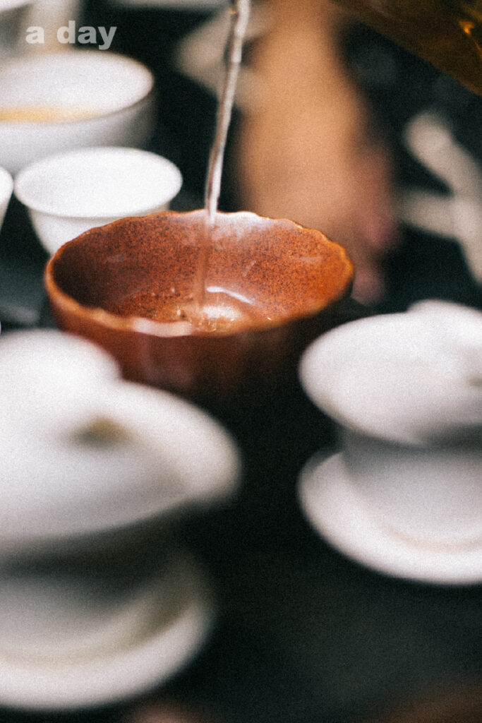 ****จูเลี่ยนยื่นถ้วยชาให้เราลองดื่ม ขณะที่เราจิบอย่างระวังเพราะลิ้นแทบพองเมื่อแตะถูกปากแก้ว ชายหนุ่มตรงหน้าก็ซดมันอย่างคล่องคอ คงไม่ใช่เรื่องแปลกสำหรับคนที่ติดชาเย็นมากกว่าชาร้อนอย่างเรา จูเลี่ยนว่าต้องสูดเสียงดัง ให้มีทั้งน้ำชาและอากาศเข้าปาก คราวนั้นเองที่เราหัดดื่มด่ำกับชาในถ้วยใบเล็กตามวัฒนธรรมที่ควรจะเป็น
