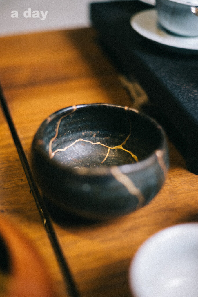 “อีกอย่างที่เรารักถ้วยใบนี้เพราะมันทำให้รู้จักปรัชญาคินสึงิ ปรัชญาความสมบูรณ์ในความไม่สมบูรณ์ เราได้เห็นว่าความสมบูรณ์ คือการมีรอยแตก มันเลี่ยงไม่ได้ในการใช้ชีวิต อย่างไรก็จะมีช่วงพังๆ ช่วงผิดพลาด และที่สำคัญการเห็นรอยแตกมันแสดงให้เห็นว่าเราผ่านอะไรมาบ้าง คนก็เปรียบเหมือนถ้วยชาที่แตกนะ อย่างน้อยต้องเคยมีการแตกหรือร่องรอยอะไรอยู่ กลายเป็นบทเรียนสำคัญในการให้อภัยตัวเองเหมือนกัน เราอนุญาตให้ตัวเองไม่เพอร์เฟกต์และยอมรับตัวเอง ความไม่สมบูรณ์ก็เป็นส่วนหนึ่งของความเป็นเราที่ล้างออกไม่ได้”