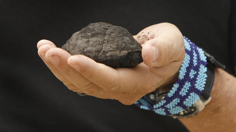 Polymetallic nodules on the deep seabed, like this one, contain nickel, cobalt, copper and manganese - metals targeted for batteries and electronics. Carolyn Cole/Getty Images