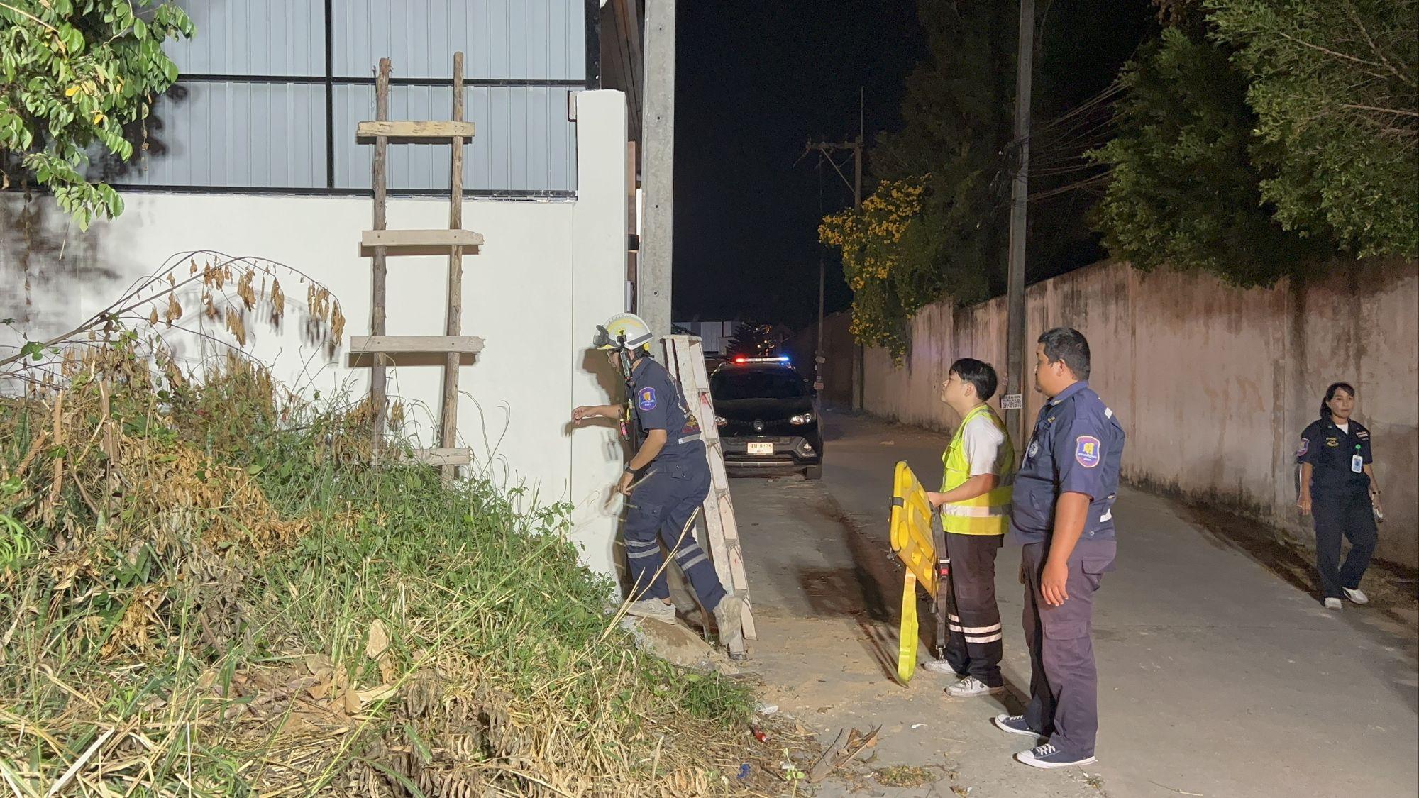 Rescue workers from Sawang Boriboon Pattaya and officers from Nong Prue Police Station rushed to the scene after residents reported a man screaming for help and behaving erratically.