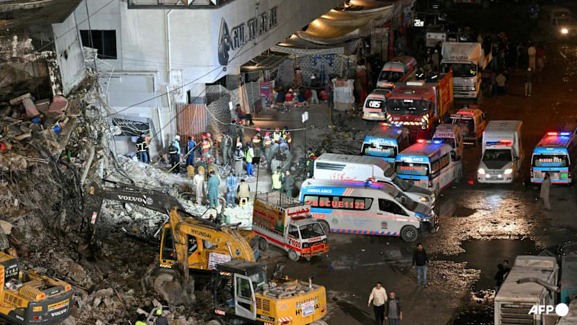 Rescue workers search for bodies among the rubble after a massive fire broke out at a shopping mall in Karachi on Jan 21, 2026. (Photo: AFP/Asif Hasssan)