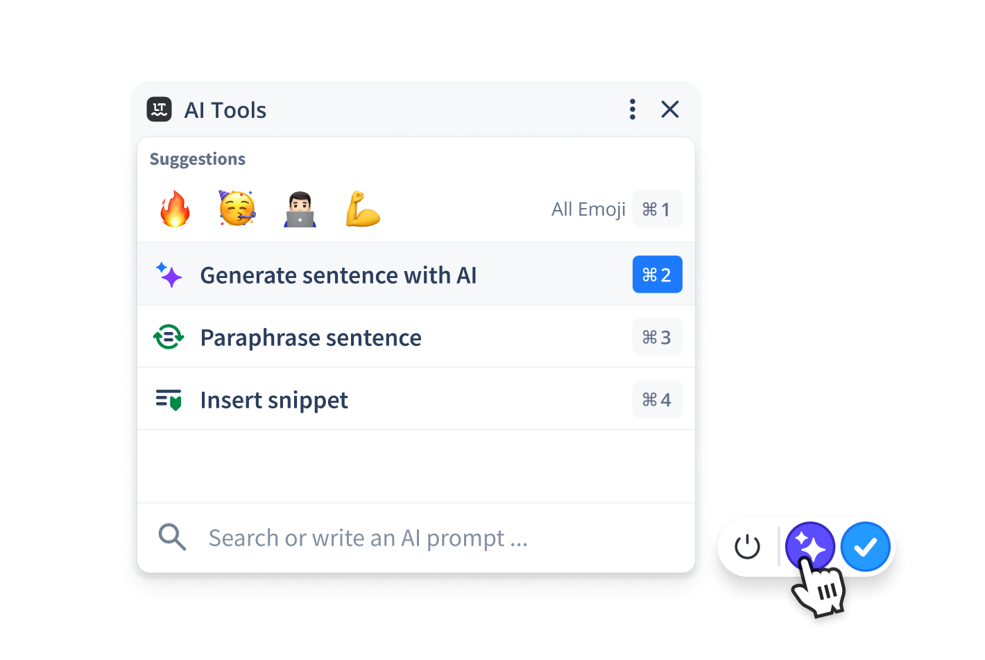 Generate text with AI prompts inside your favorite web apps. Whether you’re writing emails, documents, or social posts, instant assistance is always at your fingertips.