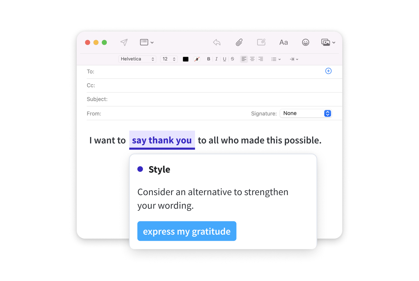 LanguageTool Premium goes beyond grammar and spelling correction. Get suggestions to improve your tone and voice in real time.