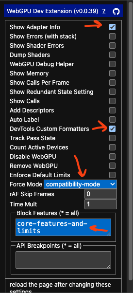 Note: Compatibility mode is shipping in Chrome 146. (2026-02-23) It may be available in your browser as an experiment. In, Chrome Canary, as of version 136.0.7063.0 (2025-03-11), you can allow compatibility mode by enabling the flag “enable-unsafe-webgpu” by going to chrome://flags/#enable-unsafe-webgpu.