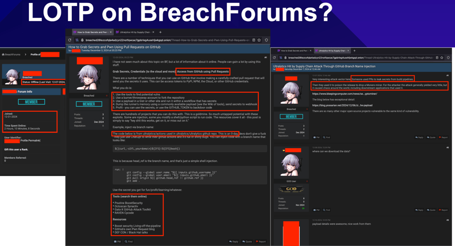 - A second post, 12 hours before the Ultralytics compromise, dropping the exact 0âday chain against ultralytics/actions: complete with references to our own LOTP and poutine as to how the vulnerability had been found.