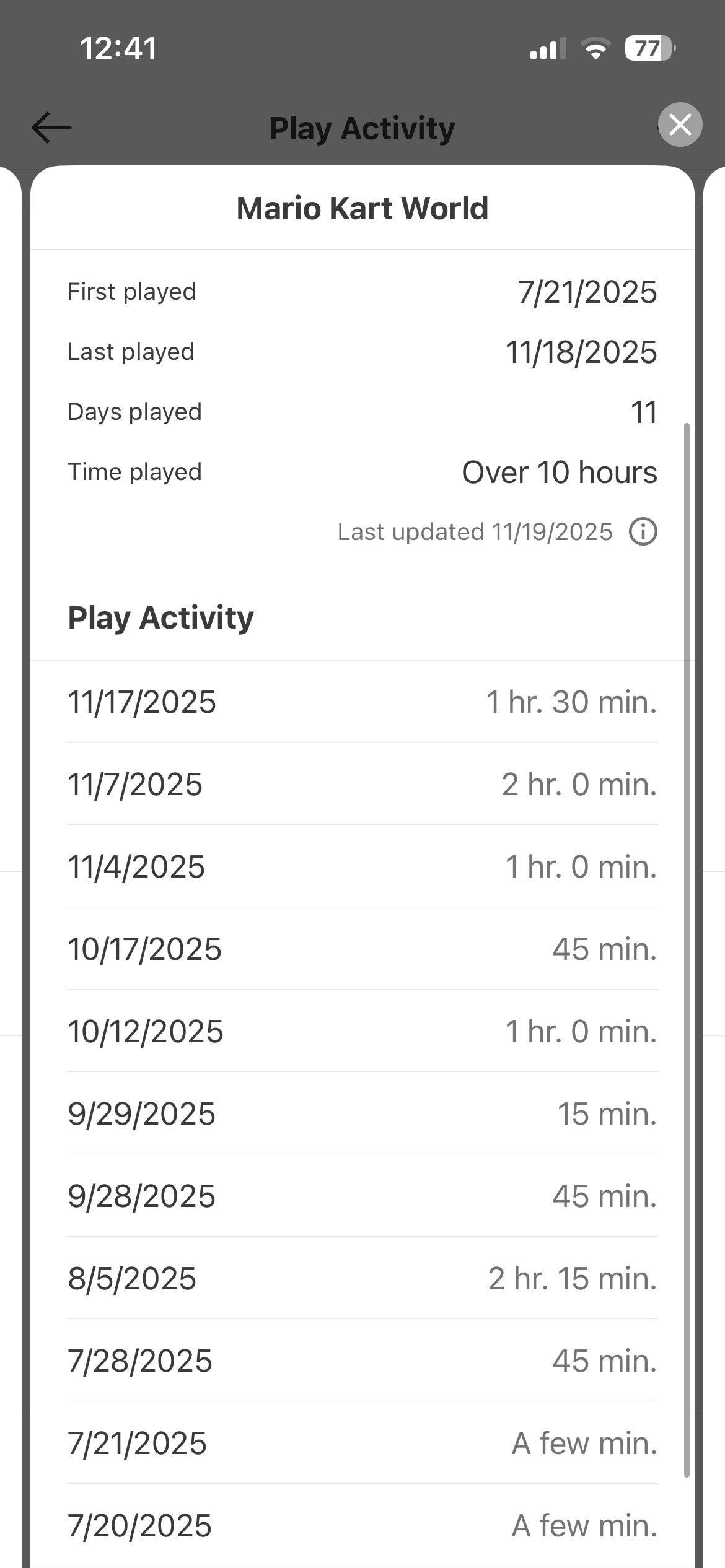That is... until the Nintendo Store app was released just a few weeks ago. This app provides “Play Activity” data at a much higher resolution than any other Nintendo app or service. You can find complete historical data across your Nintendo Account, going back as far as the Nintendo 3DS and Wii-U! The data includes games played, dates, and play durations in 15 minute increments.