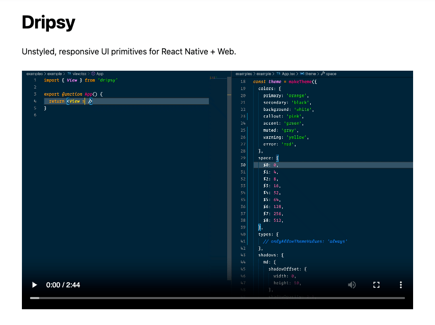 Dripsy is widely loved for its responsive-first approach. Built on Moti, it uses a sx prop like Theme UI. This makes it easy to create layouts that adjust smoothly from mobile screens to desktop web browsers.