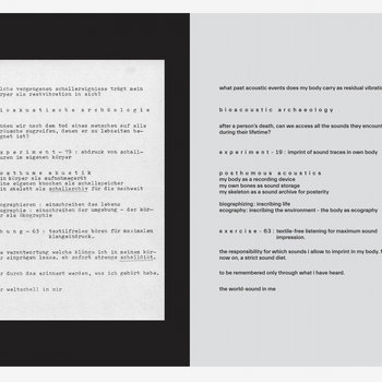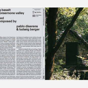During a trip to Switzerland’s Onsernone Valley, Pablo Diserens and Ludwig Berger found a folder labeled “Basalt.” It was filled with sheets of paper covered in typewritten aphorisms: “How deeply does a sound penetrate me before it fades away?” and “My body as a recording device/ My own bones as sound storage/ My skeleton as a sound archive for posterity.” Diserens and Berger discovered that Basalt was the name of a gender non-conforming person who fled Berlin from the Nazis before settling in the Onsernone Valley in the 1950s. There, they started to formulate ideas about sound. Basalt theorized that sound waves leave traces in physical matter—including their own body. They organized a “strict sound diet” to control what would end up recorded in their bones. Tracing basalt in the onsernone valley is Diserens and Berger’s attempt to follow this diet themselves, recreating the listening experiments that Basalt wrote down. Research is ongoing into Basalt’s life; their eventual fate is still unknown. However, this release is the first step in publicizing their remarkable story and circulating their fascinating thoughts about sound, listening, and identity.