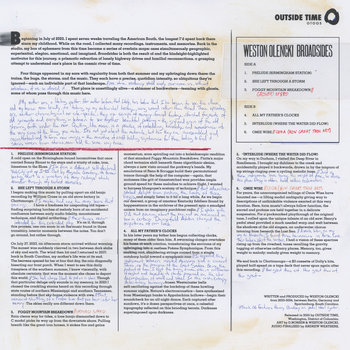 Weston Olencki traveled the American South and rediscovered the sounds of their childhood: “the trains, the bugs, the storms, and the music.” The first sound on Broadsides is a train leaving Birmingham Station, and then a summer storm enters before undulating waves of cicadas. Olencki plays traditional instruments like banjo, autoharp, and dulcimer, but plays them out of tune, or reverses them, or speeds them up beyond human ability, turning Broadsides into a commentary on folk music as much as a folk record in its own right. More than anything, they are interested in how this music resonates in the region. Everywhere, there are in situ recordings that place you in the South, whether it’s the locale of a murder ballad (the Deep River in Randleman, North Carolina, where the victim of “Omie Wise” was drowned) or of Olencki’s own upbringing (the clocks from his father’s collection on “all my father’s clocks”). The message of Olencki’s Broadsides is clear: You can’t understand the South without understanding its music, and you can’t understand its music without listening to the land.