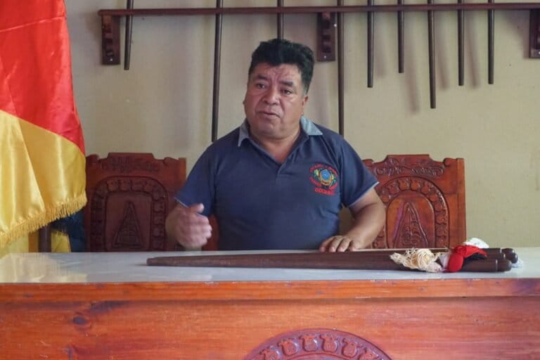 In April 2025, Luis Pacheco, the former leader of the 48 Cantones de Totonicapán movement, was arrested with charges of terrorism in connection to peaceful protests during Guatemala’s 2023 general elections. “Pacheco was our leader; he guided us in the marches that in 2023 brought thousands of Maya communities to Guatemala City. We all left our communities walking to the capital to protest against the coup d’état that the prosecutor’s office wanted to carry out,” López says.