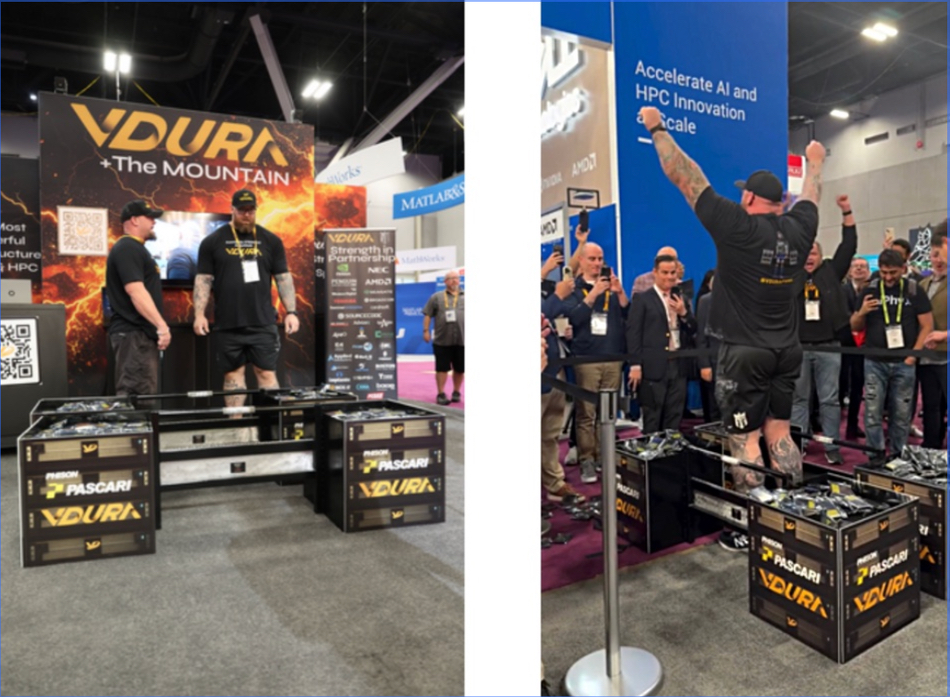 Before a packed audience at Booth 2033, Björnsson transferred 136.5 petabytes (PB) of data in just 27 seconds, hitting a sustained rate of 5.1 PB per second (≈ 303 PB per minute). The demonstration showcased the combined power of Phison Pascari enterprise SSDs and VDURA’s Flash-optimized parallel data storage infrastructure, unleashing bandwidth once thought impossible in AI and HPC environments. “VDURA is built for moments like this,” said Ken Claffey, CEO of VDURA. “What Thor achieved on the show floor symbolizes what our customers achieve every day. Extreme performance, scalability, and durability, all working together at record-breaking speed.” Who said storage can’t be fun?