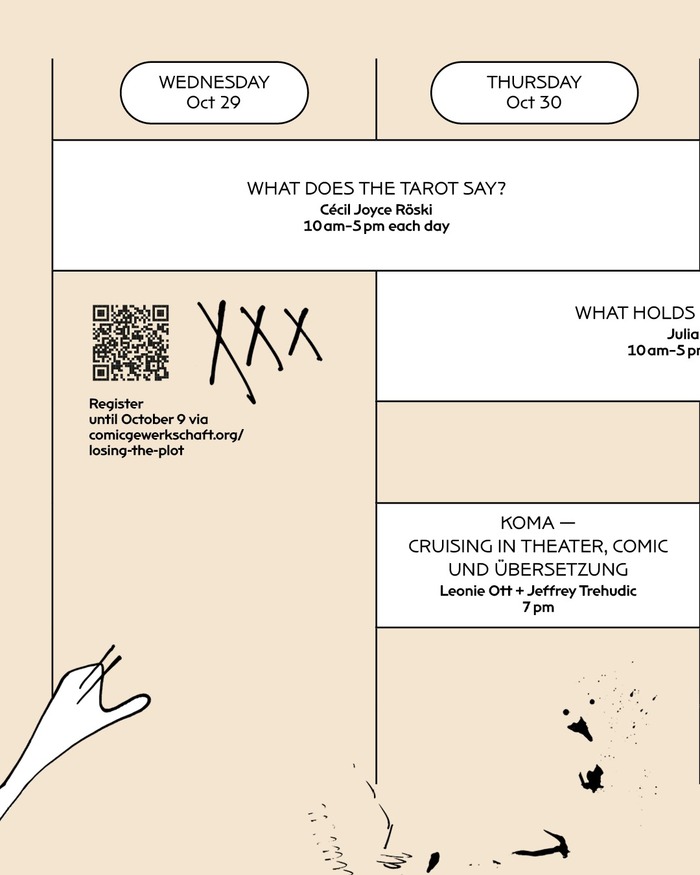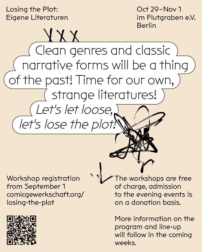 Berlin-based designer Stefanie Leinhos signs the identity of the 2025 edition of Losing the Plot, a festival organized by the the Comic Gewerkschaft, a union connecting comic book practitioners in Germany. The festival features round tables, talks, and workshops.