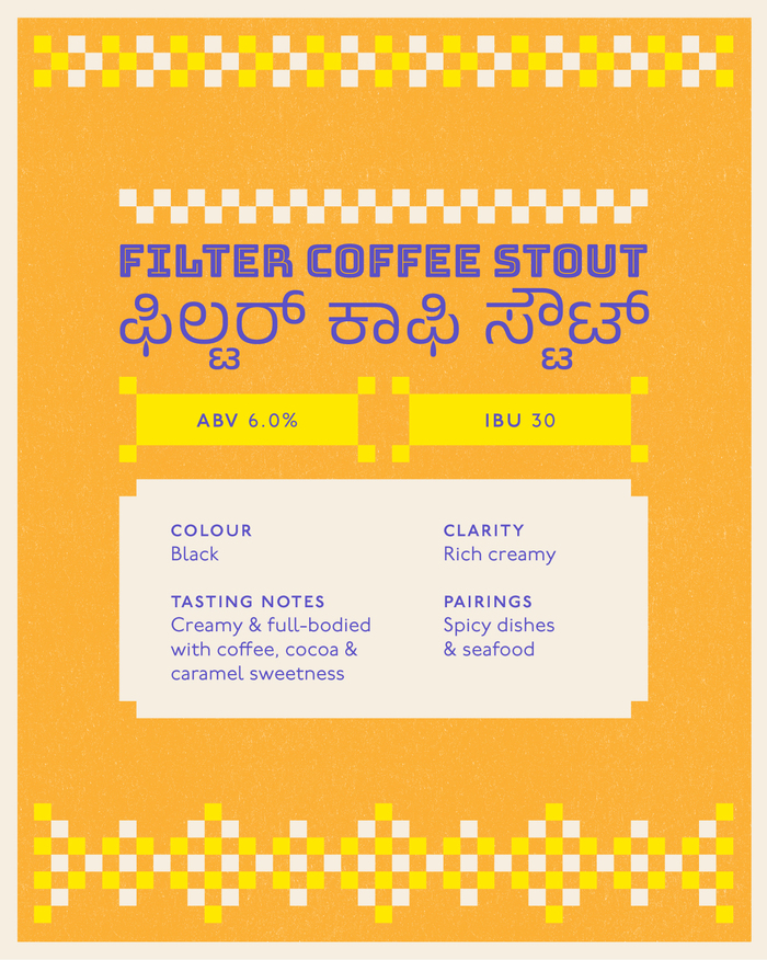 Tiny square illustrations echo Kowdhi’s pattern and pair seamlessly with Bungee, Biergarten’s primary typeface with its bold, structured form. Anek Kannada brings the regional script and language into the system, adding warmth through its semi-rounded forms and generous curves while maintaining clarity at every scale. The stacking of Bungee with Anek Kannada mirrors the layered patchwork of the quilts. P22 Underground anchors the typography with a clean, highly legible foundation for body copy and functional text.