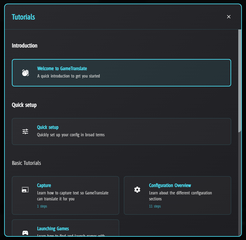 - Added a new tutorial system, which now covers a basic overview of the Games & Configuration tab, as well as more specific tutorials for OCR, Keybindings, Font, General and Internal translation engine tabs (unfortunately currently only covers the English language)