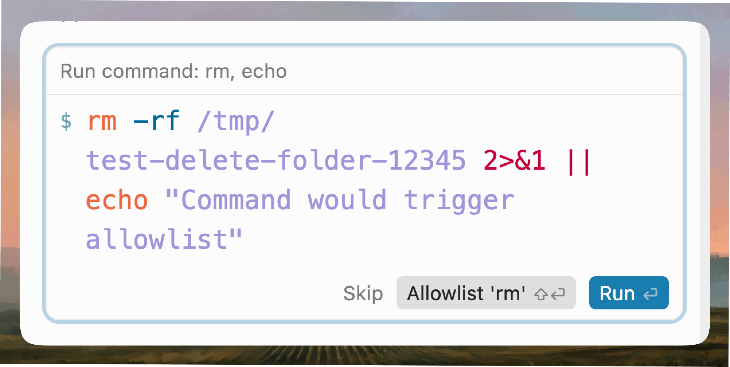 Allowlist your routine commands. The first time Cursor asks to run a command like git commit or npm run dev, approve it when prompted. Cursor will remember and automatically execute that command in future chats without asking. You can manage your allowlist later if needed.