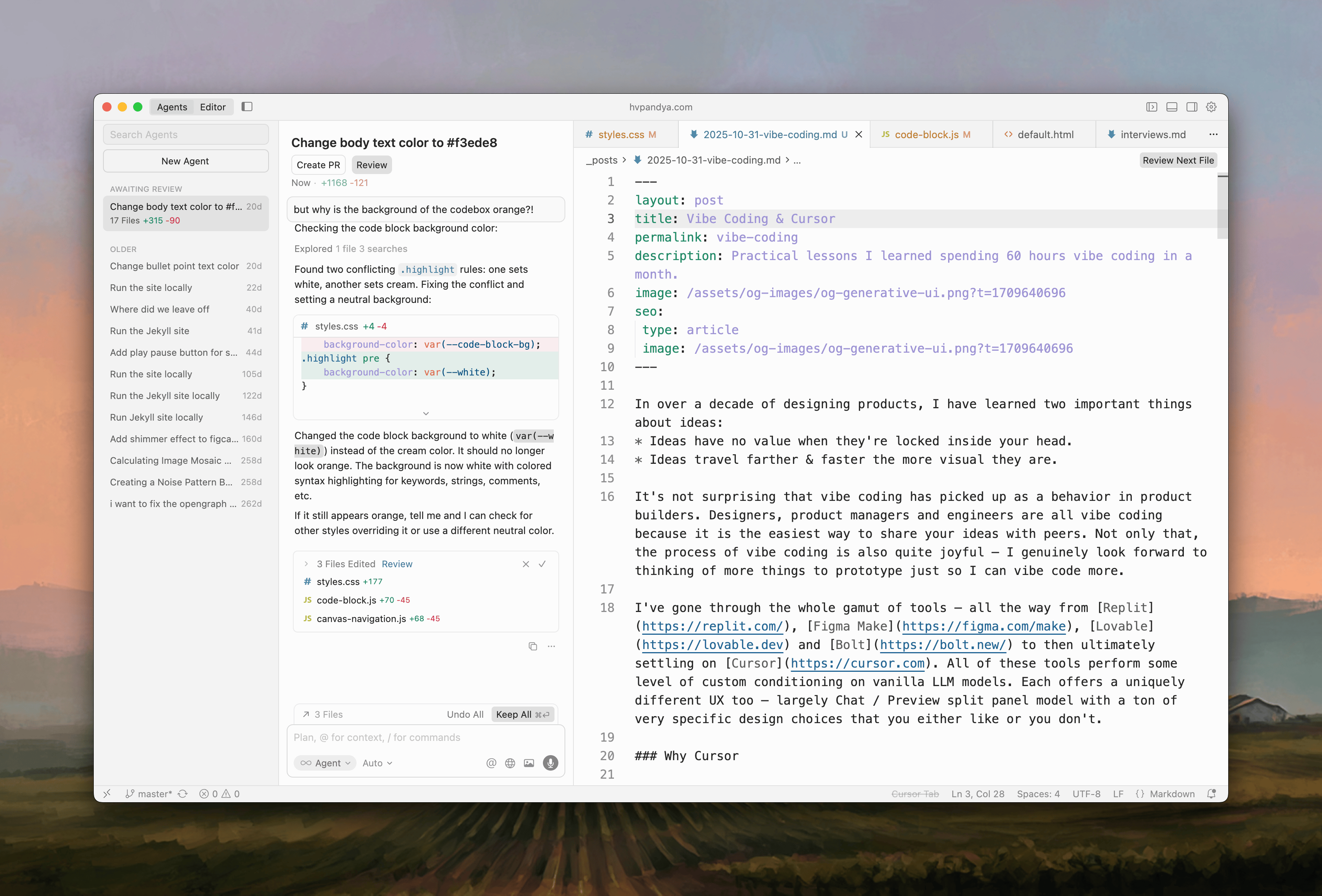 I’ve coded nearly all my life, including this website and many other projects, so Cursor felt like a natural choice.