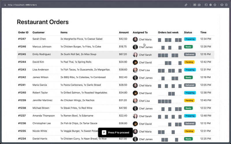 Access real data sources without context switching. Cursor can fetch real people’s names, avatars, and metadata from public APIs, generate domain-relevant content like ticket titles, alert messages, or project names that reflect real-world semantics, and keep everything consistent across your prototype. You stay in flow, and your prototype gains the realism that makes stakeholders take it seriously.