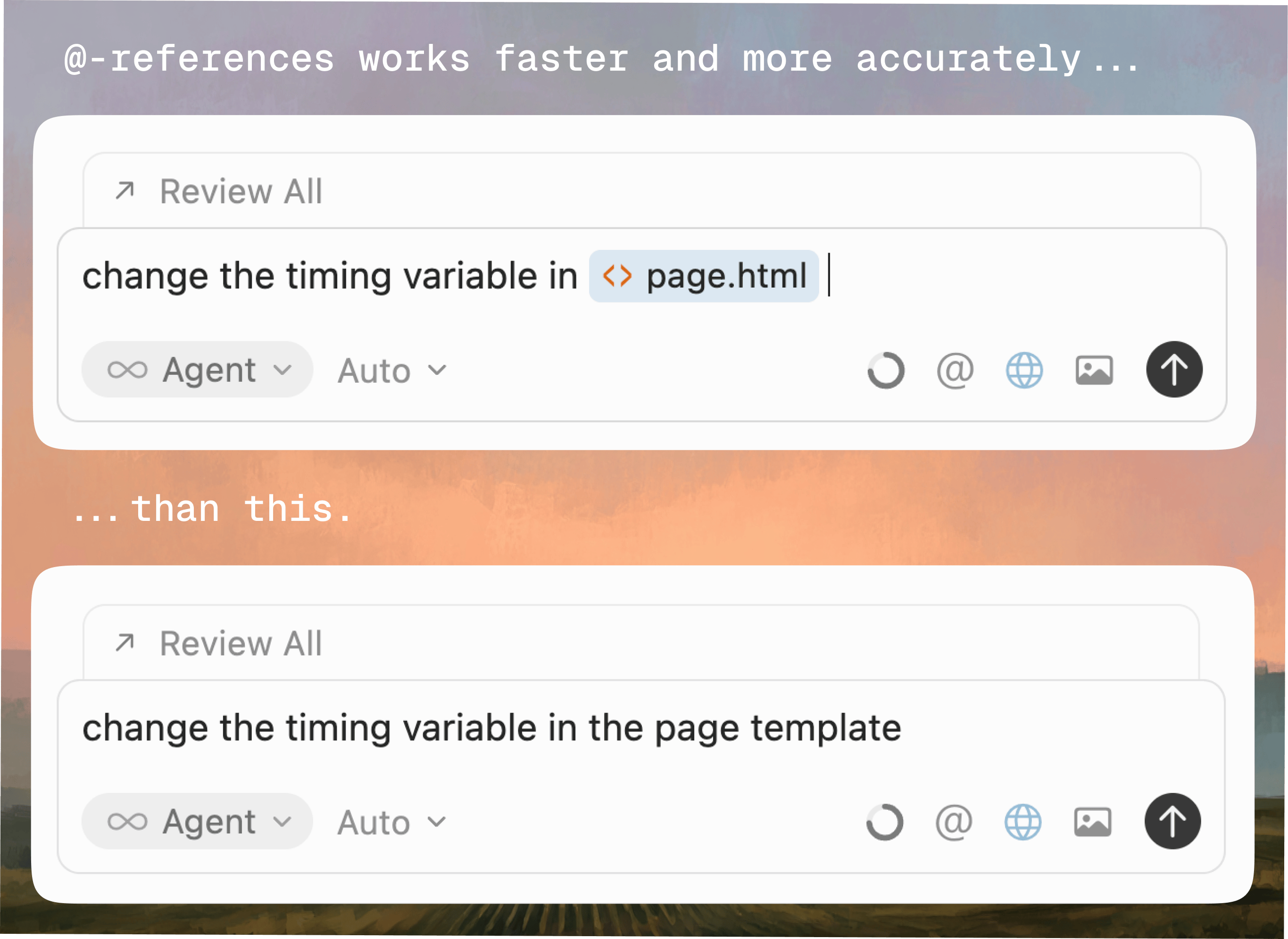 Tag deterministic targets with @ in prompts for fast and accurate edits.
