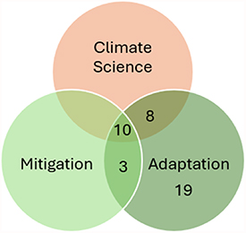 | Topic | Climate science | Mitigation | Adaptation | Total |