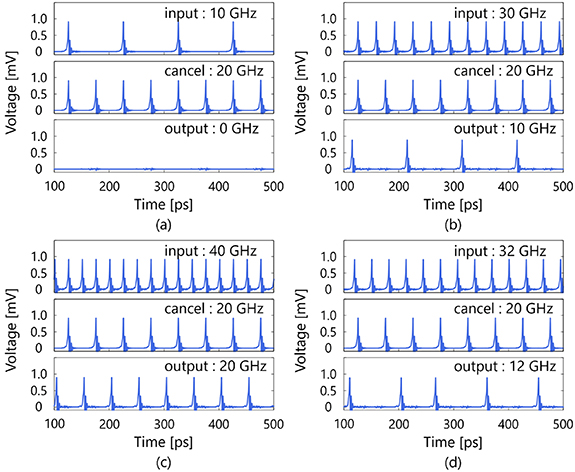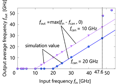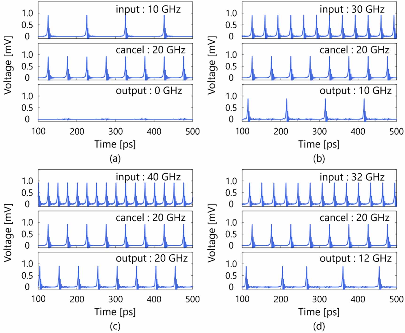 , the SFQ signal is output to the ‘output’ port at the frequency of the difference between fin and fcan (