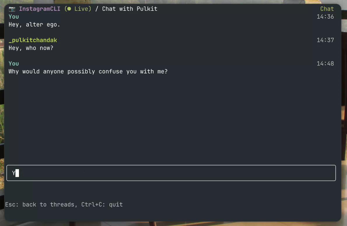 Claiming to be the “ultimate weapon against brainrot”, Instagram-CLI provides an exciting option to use Instagram through your terminal. Said mission is achieved by limiting possible actions to only three things: checking your messages, your notifications, and your feed (consisting only of the accounts that you have followed).