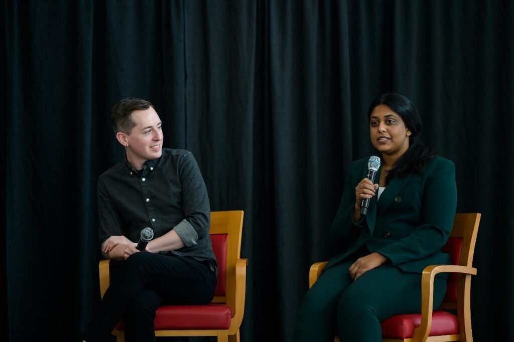 Paris Marx (left) and Nikita Roy (right) discussing the use of artificial intelligence in newsrooms. Photo: Press Forward