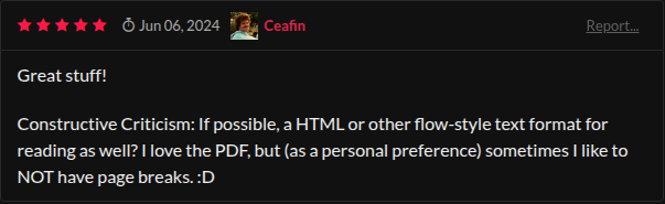 This update actually started with you. A while back, a Platformer Essentials Cookbook customer reached out asking if the book could be made available in HTML format. Their reason? The exact issue I mentioned: those frustrating page breaks that split code blocks and disrupt the reading flow.