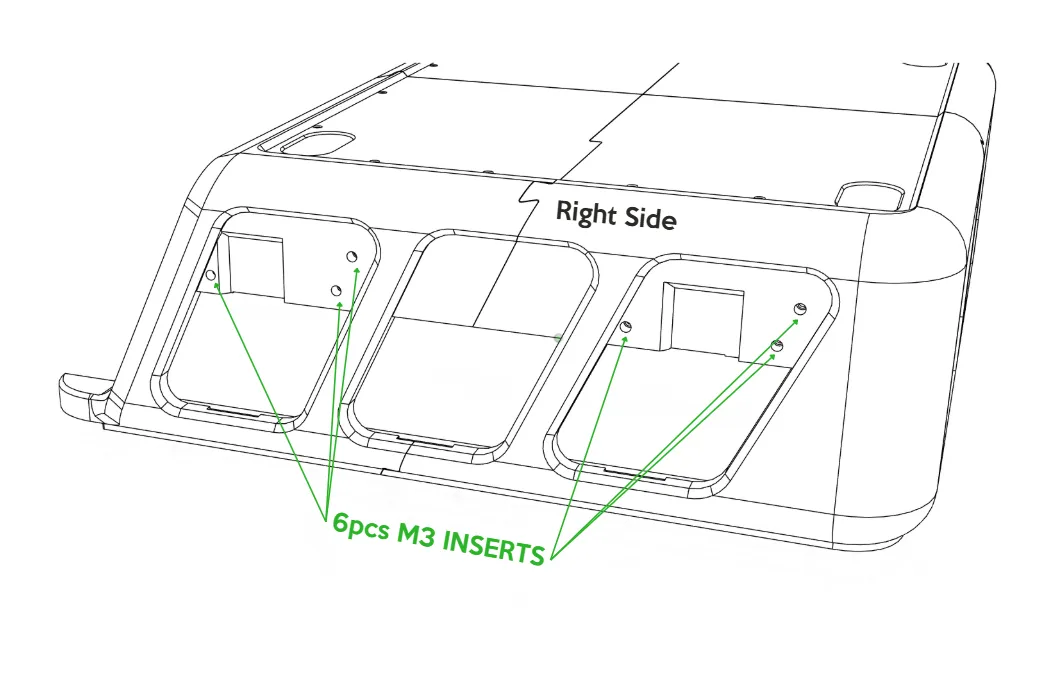 Install 3× M3 threaded inserts into the designated holes using a soldering iron set to 200 degrees Celsius
