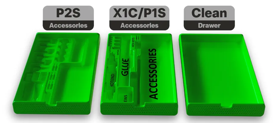 - 24/11/25 – Added custom drawer for the P2S (fits all P2S-specific accessories).