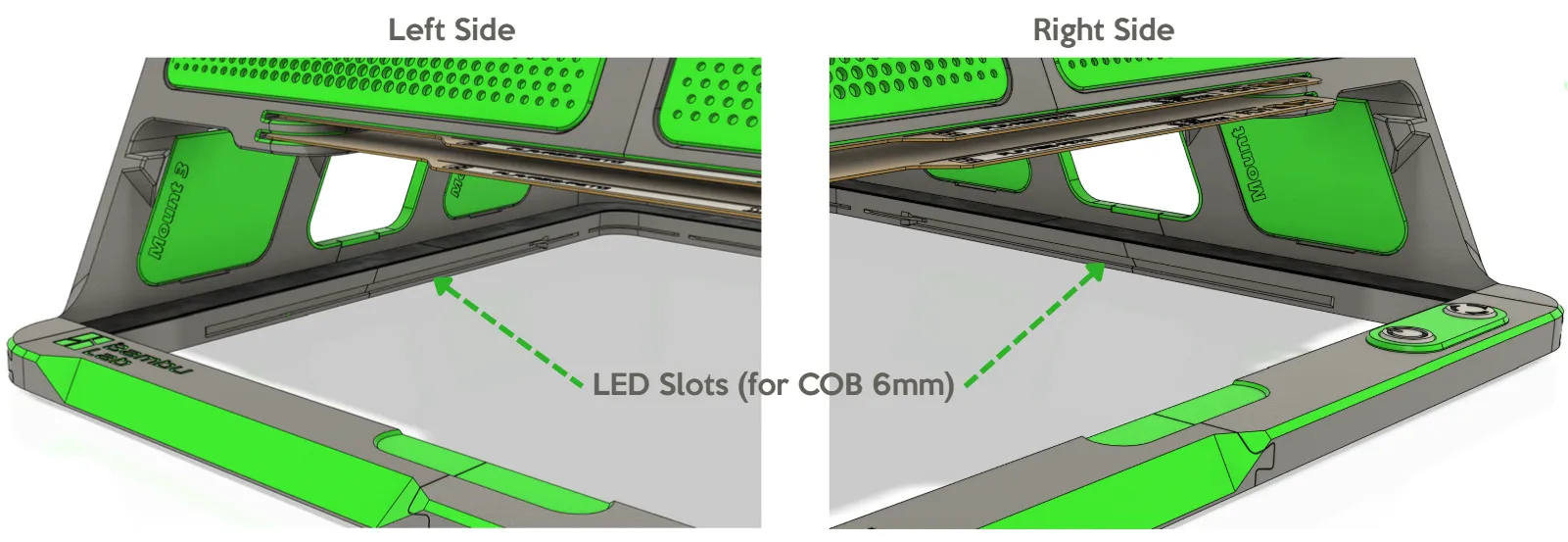 The original design was intended to use 6 mm wide COB LED strips that can fit perfectly inside the dedicated slots.
