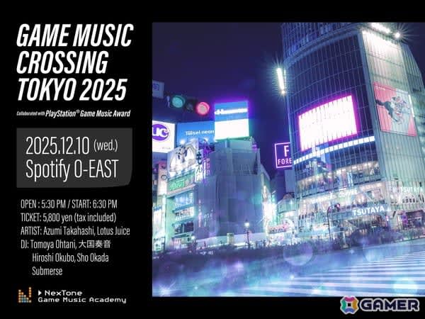 ソニー・インタラクティブエンタテインメントは、後援するライブイベント「“GAME MUSIC CROSSING TOKYO”~Collaborated with PlayStation Game Music 大賞~」が2025年12月10日に渋谷 Spotify O-EASTで開催されると発表した。