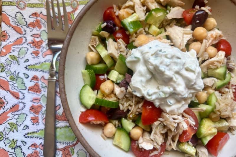 This quick, high-protein Greek bowl proves that a satisfying meal doesn’t need to take all night. Juicy chicken, hearty chickpeas, and a creamy yogurt sauce come together over warm rice for a Mediterranean-inspired dish that’s fresh, filling, and ready in just minutes. Crisp cucumbers and a splash of yogurt keep every bite bright and flavorful — perfect for busy weeknights, make-ahead lunches, or any time you want a nourishing meal without the wait. Find the recipe here.