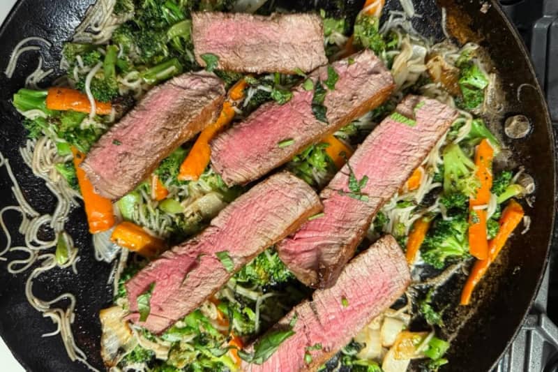 Get the recipe for this simple steak and veggie dish with low-carb noodles here. Image: Liza Graves