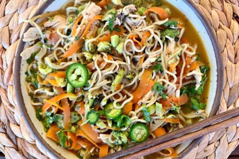 This is a “semi-homemade” scenario, as it starts with a package of rice ramen from the grocery store. Simply sautée some veggies, make the packet of noodles following the directions, and add your protein! It’s perfect for when life becomes a bit too overwhelming to cook … and then you realize this is easier than ordering takeout. Find the recipe here.